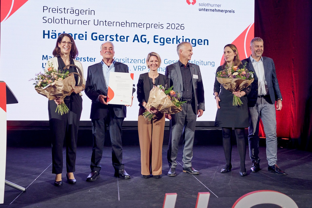 Die Härterei Gerster AG überzeugte die Jury mit der Erfüllung des Jahreskriteriums «Mit Tradition in die Moderne». Das Unternehmen, in dritter Generation geführt durch Martina Gerster, ist erfolgreich tätig in der Metallhärterei und beschäftigt am Standort Egerkingen über 110 Mitarbeitende. An der Preisverleihung nahmen Urs Gerster (zweite Generation) und Martina Gerster (dritte Generation) den Preis entgegen und beantwortete die Fragen zum Unternehmen und zu seinen Zukunftsplänen.
